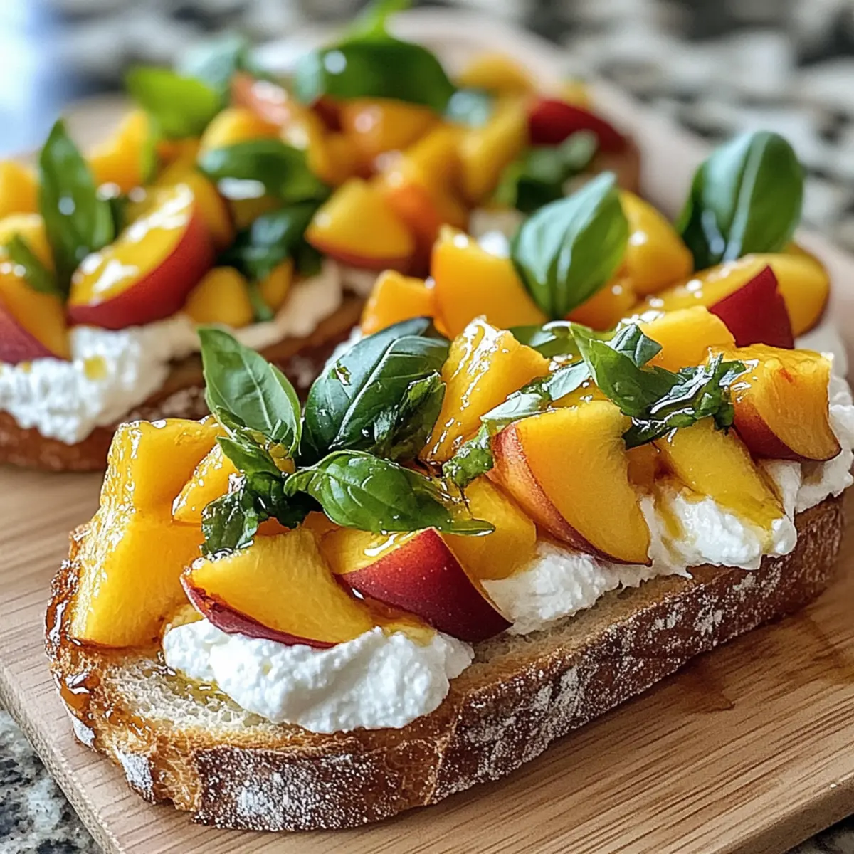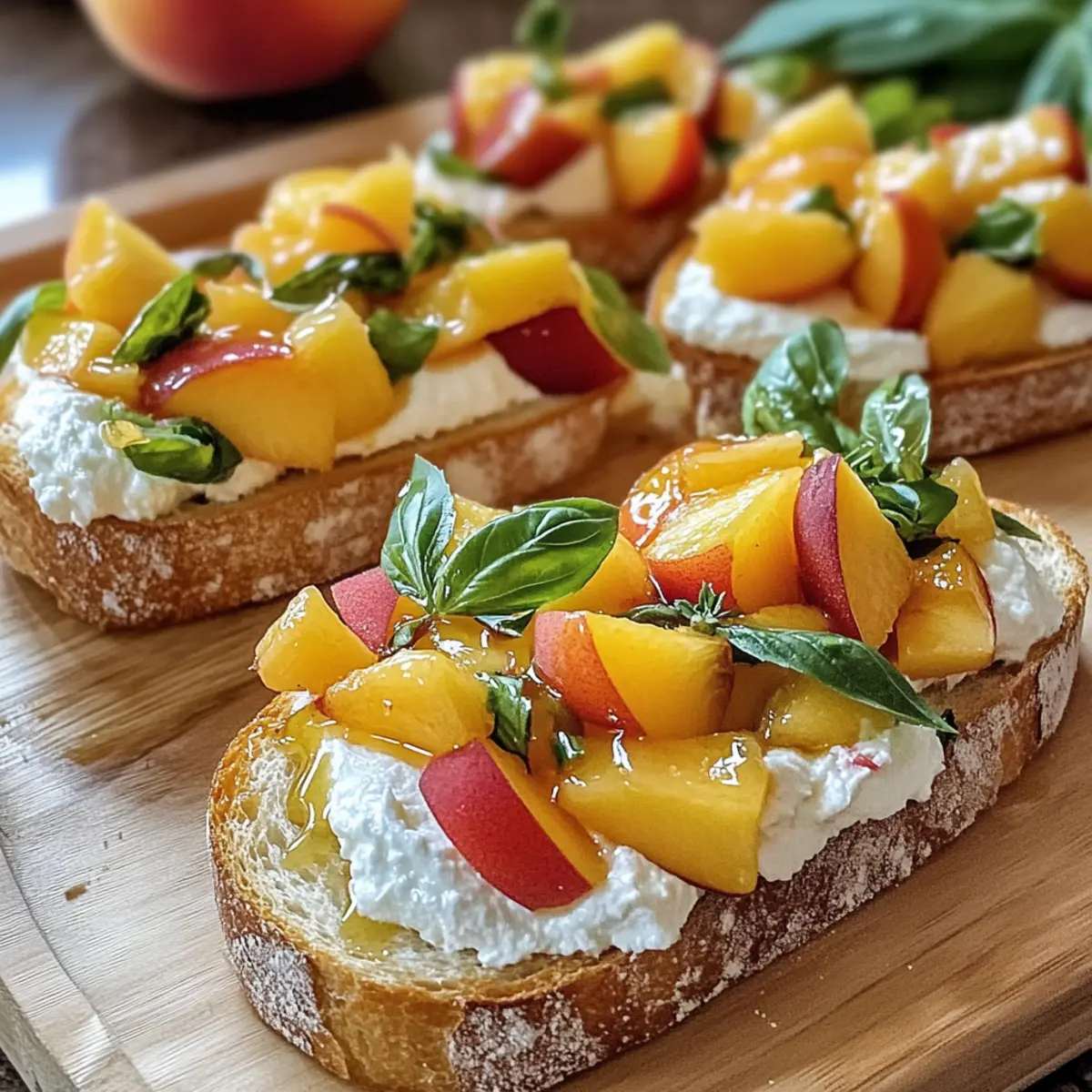 Pfirsich-Bruschetta mit geschlagenem Ricotta genießen