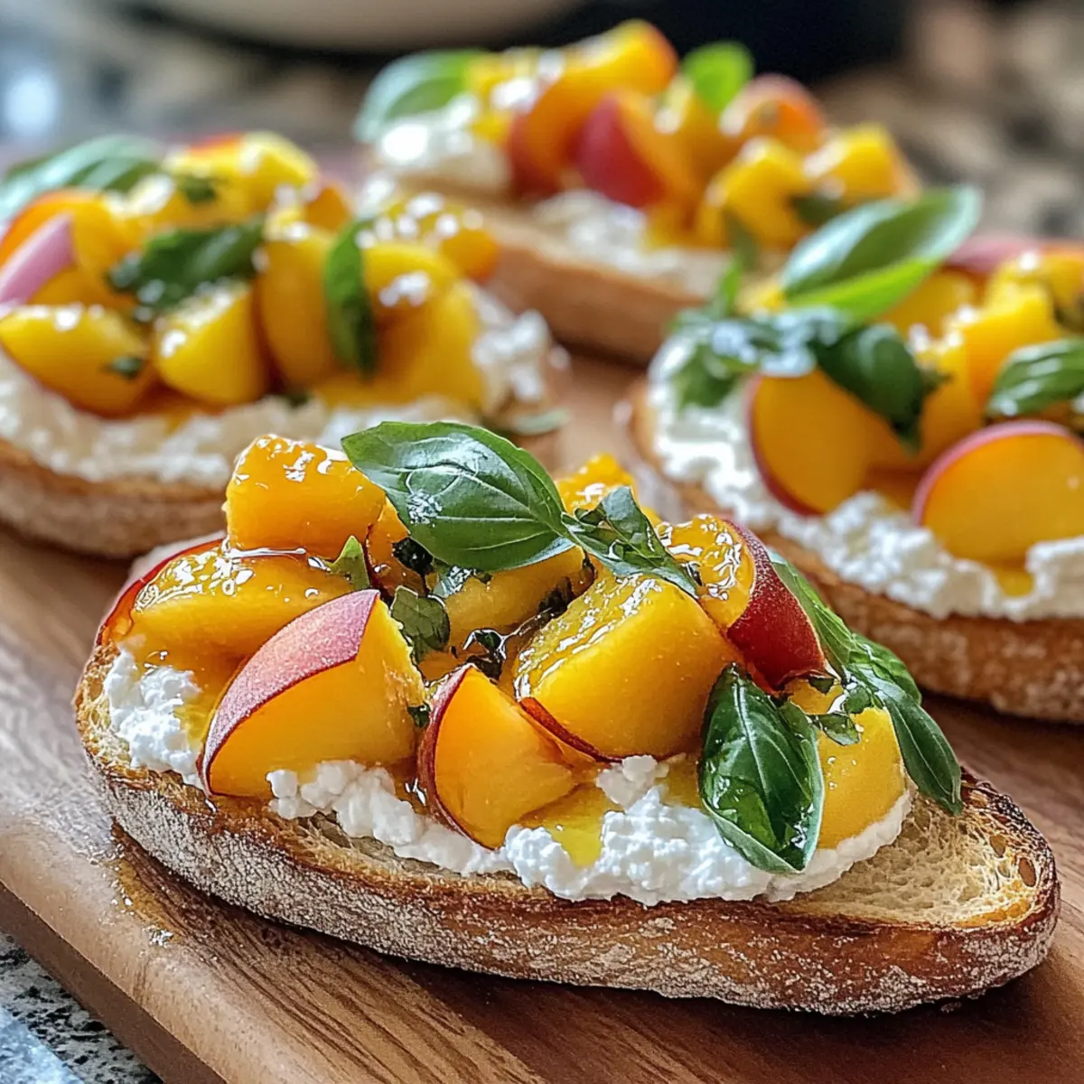 Reife Pfirsiche wählen: Achte darauf, dass die Pfirsiche leicht weich und duftend sind, um den besten Geschmack für deine Pfirsich-Bruschetta zu erzielen. Unreife Früchte könnten weniger süß sein.