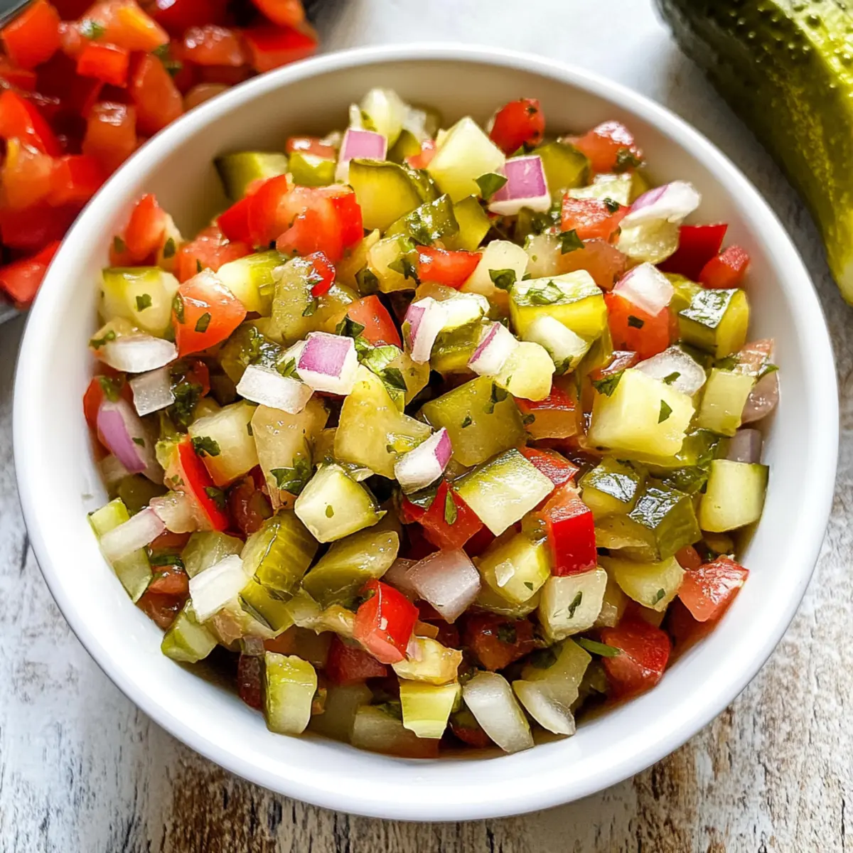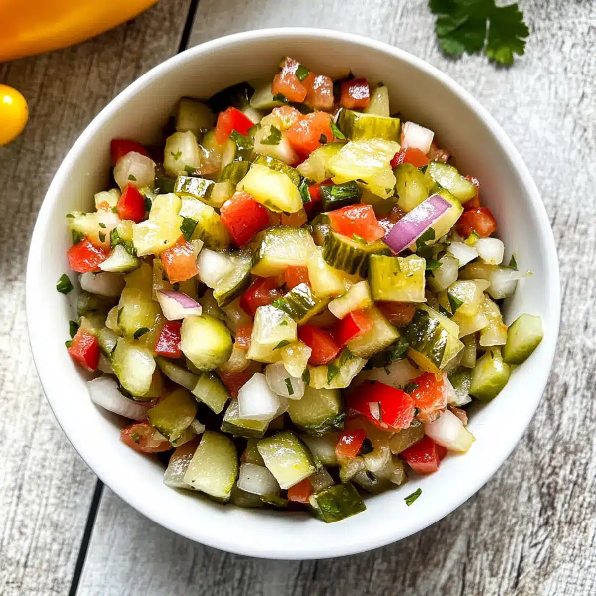 Frische Kräuter: Füge frisch gehackten Koriander oder Petersilie hinzu, um einen frischen, aromatischen Kick zu erzielen. Das macht das Pickle de Gallo noch ansprechender!