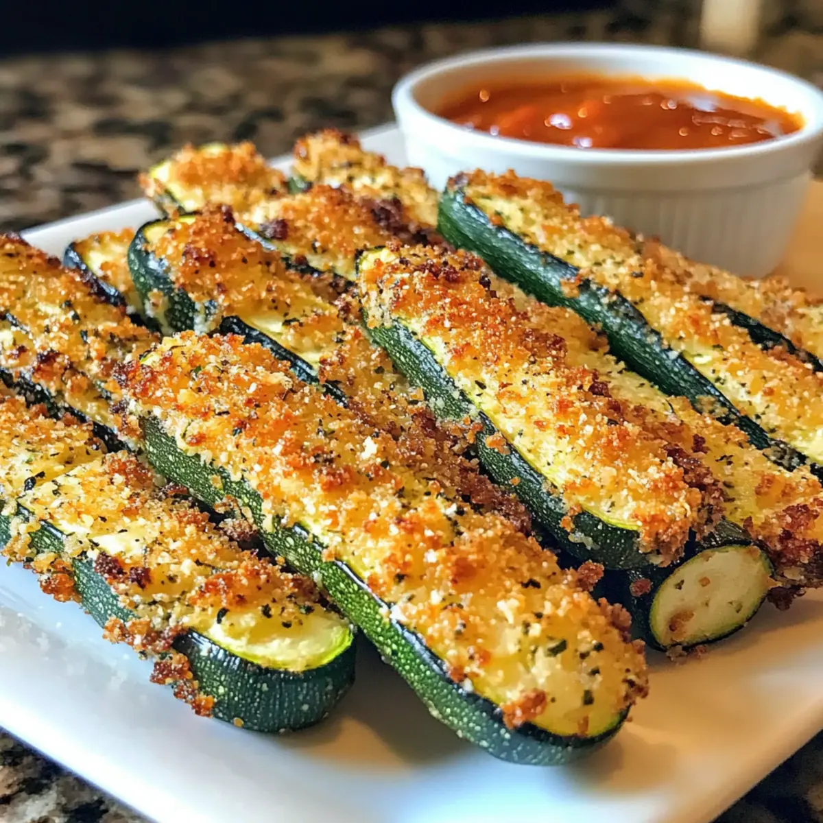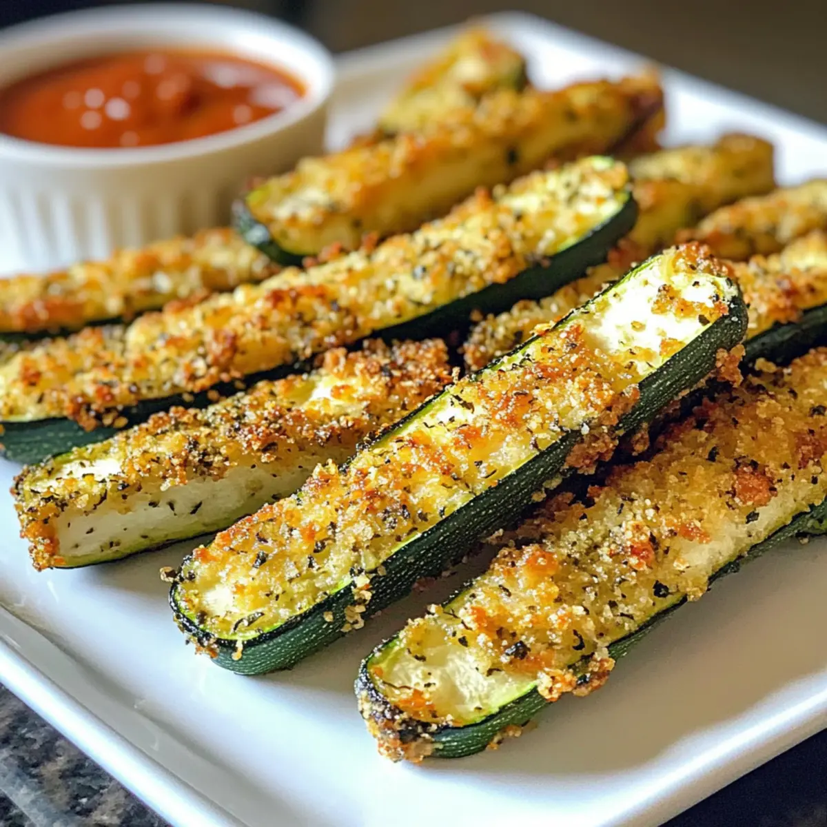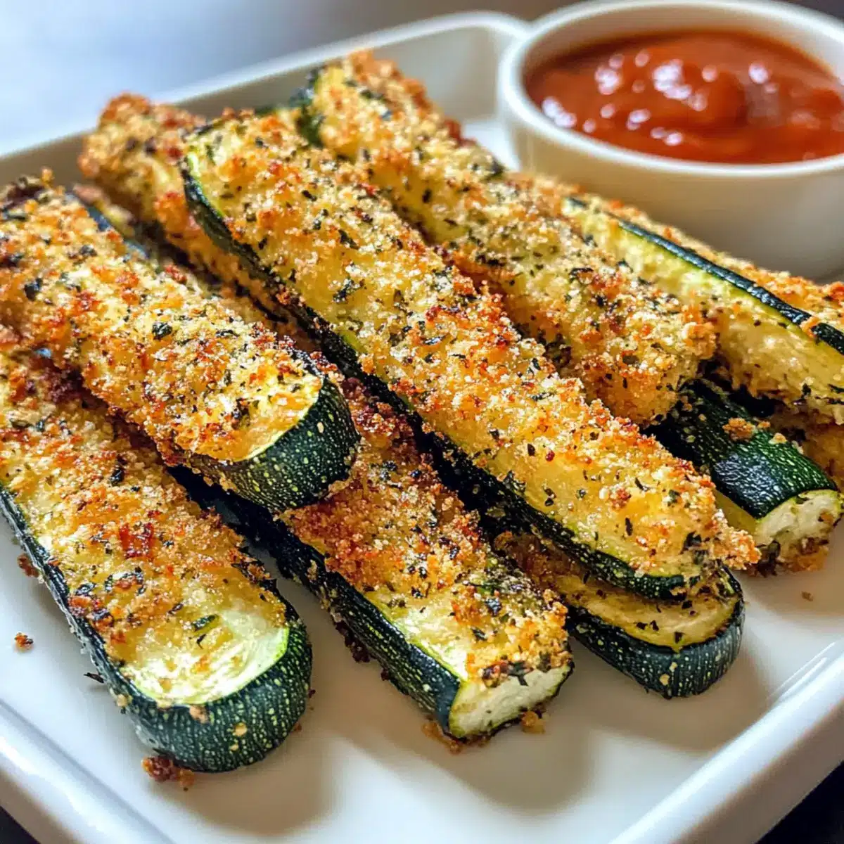 Lagerungshinweis: Genieße die Zucchini-Sticks sofort für die beste Textur; sie verlieren an Knusprigkeit, wenn sie gelagert werden.