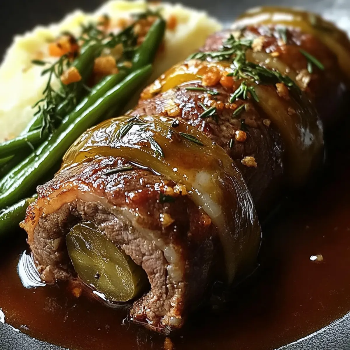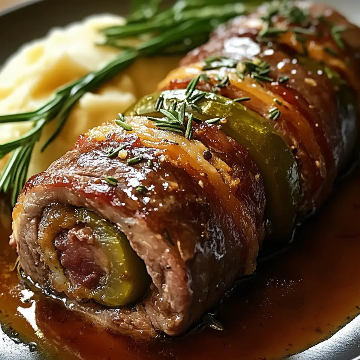 - Würzige Note: Fügen Sie einige Jalapeños oder eine Prise Cayennepfeffer zur Füllung hinzu. Die Schärfe sorgt für einen aufregenden Kontrast zur herzhaften Rinderroulade, die Ihre Geschmacksnerven überraschen wird.