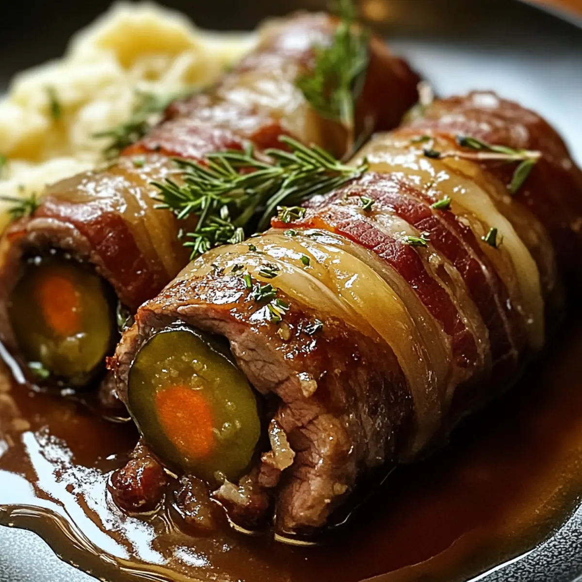 Herzhaft und köstlich: Die Kombination aus zartem Rindfleisch, würzigem Bacon und knackigen Pickles sorgt für ein Geschmackserlebnis, das Herzen höher schlagen lässt. Einfache Zubereitung: Mit nur wenigen Schritten gelingt Ihnen dieses Gericht, perfekt für Kochanfänger und Profis. Vielfältige Variationen: Ob als vegetarische Variante mit Zucchini oder als leichte Pork Rouladen, es ist für jeden etwas dabei. Familienliebling: Diese Rinderrouladen werden selbst wählerische Esser überzeugen und sind ideal für festliche Anlässe. Kombinieren Sie sie mit cremiger deutscher Jägersauce oder authentischen deutschen Frikadellen, um das Erlebnis zu vervollständigen!