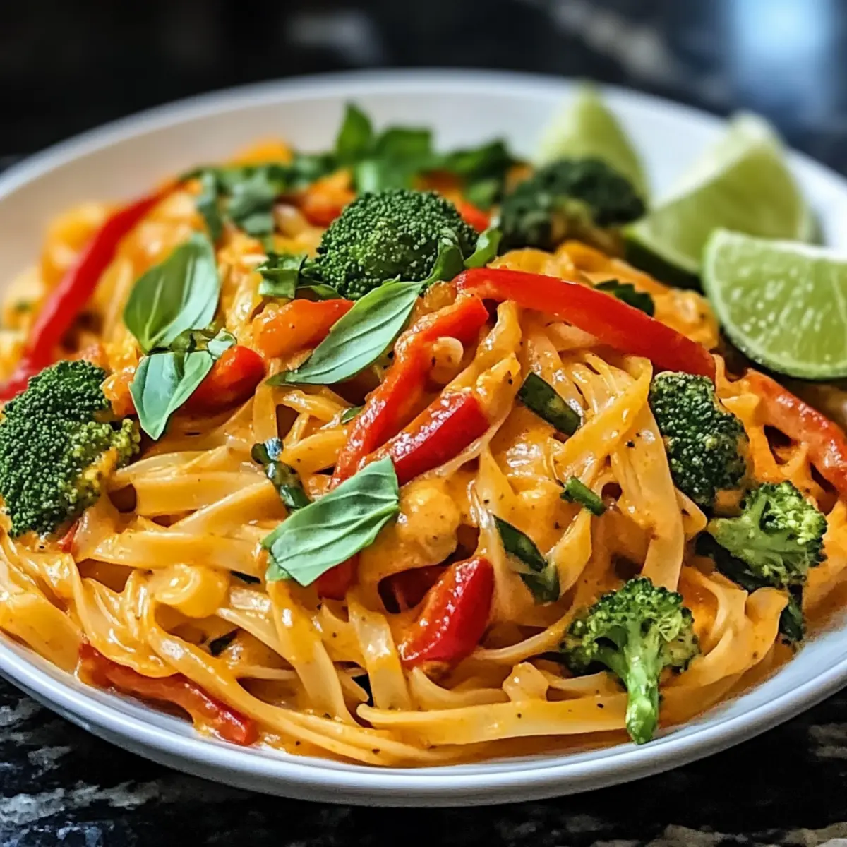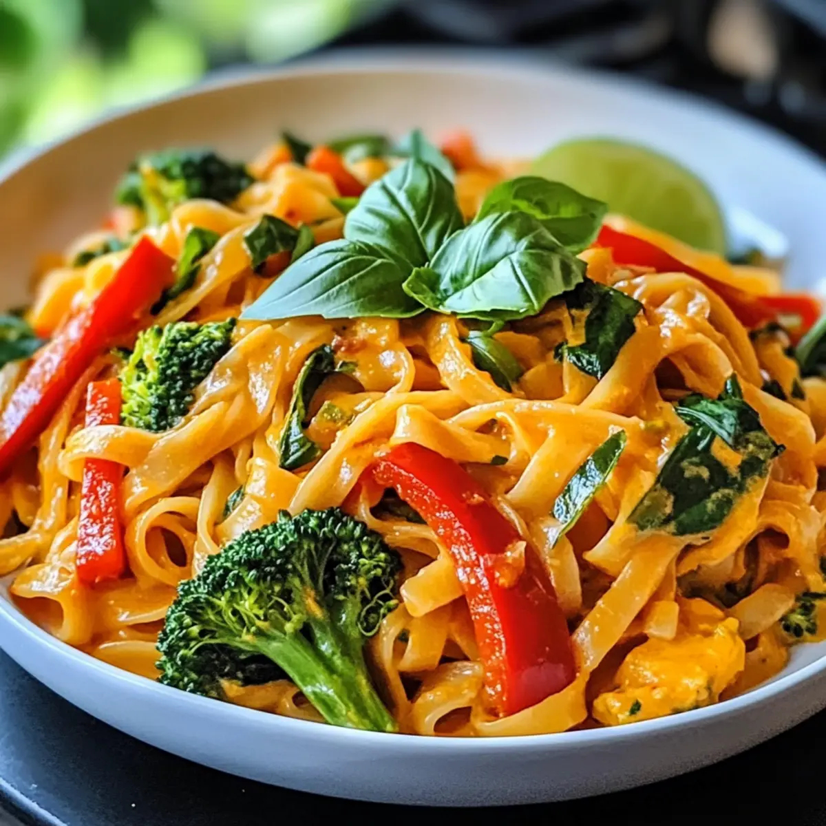 Rote-Curry-Nudeln mit Gemüse und Kokosmilch