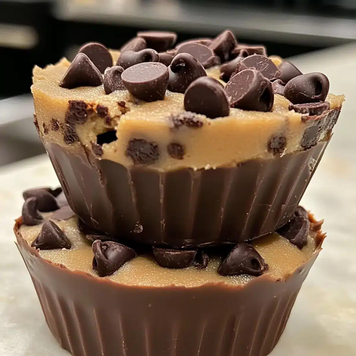 Köstlicher Genuss: Die Schokoladenkeksteigbecher bieten eine harmonische Kombination aus cremiger Schokolade und einem fluffigen Innenleben, die einfach unwiderstehlich ist.