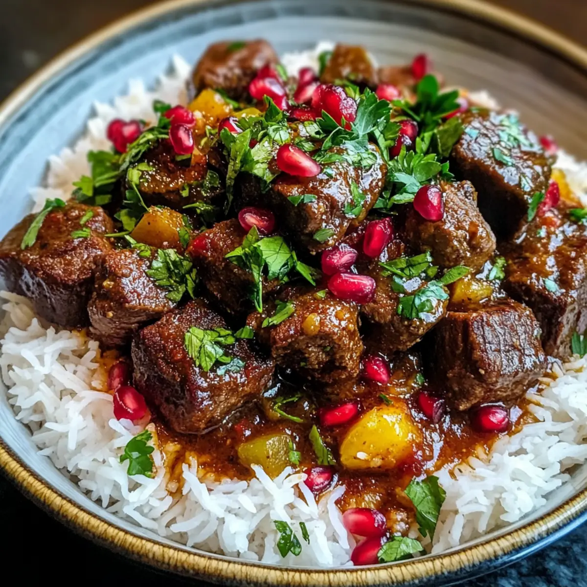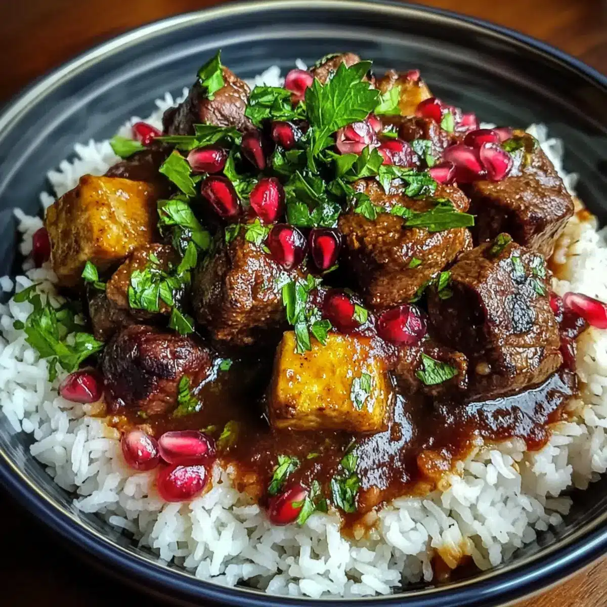 Zusatz von Trockenfrüchten: Füge getrocknete Aprikosen oder Pflaumen zur Sauce hinzu. Sie bringen eine süßere Note, die toll mit der Säure des Granatapfels harmoniert.