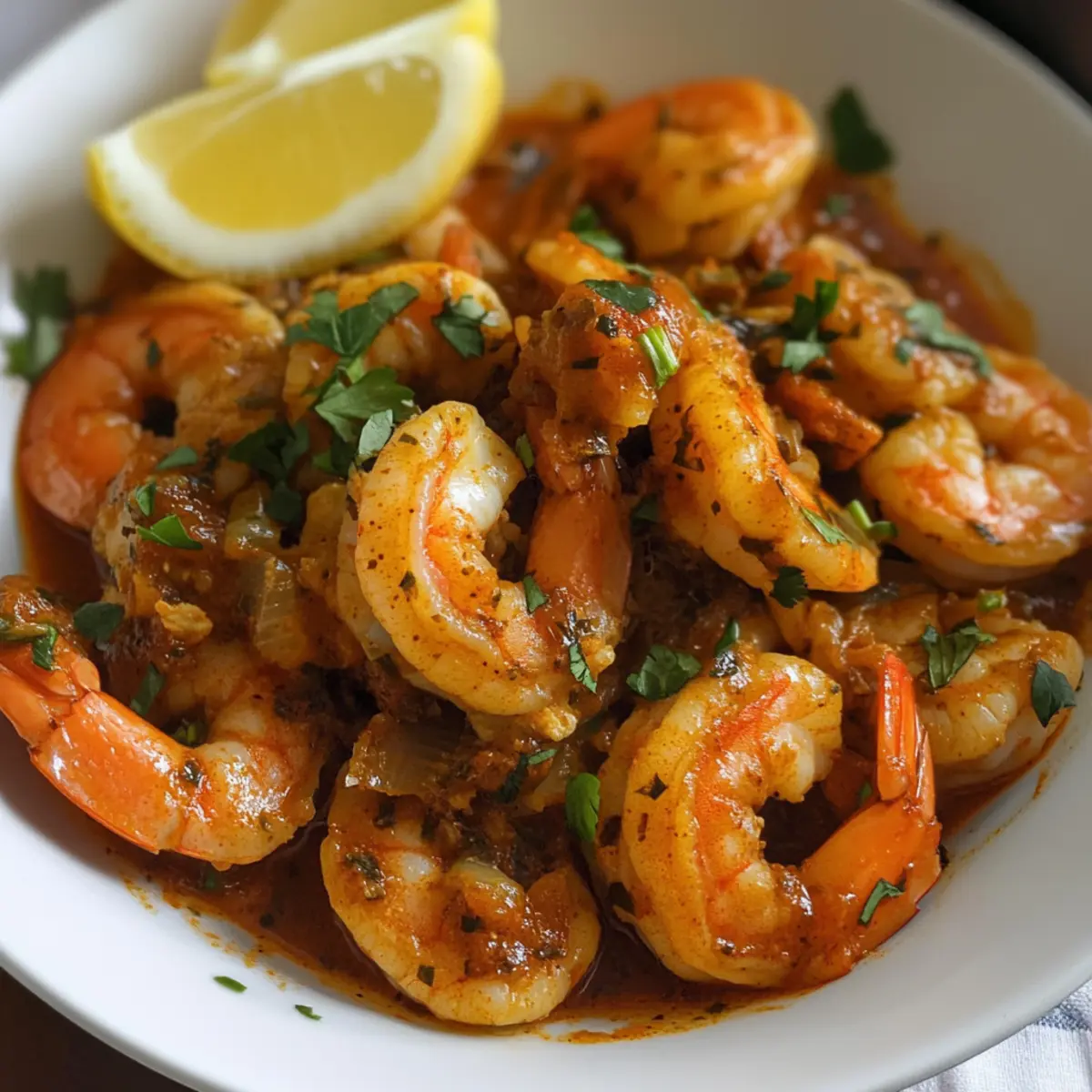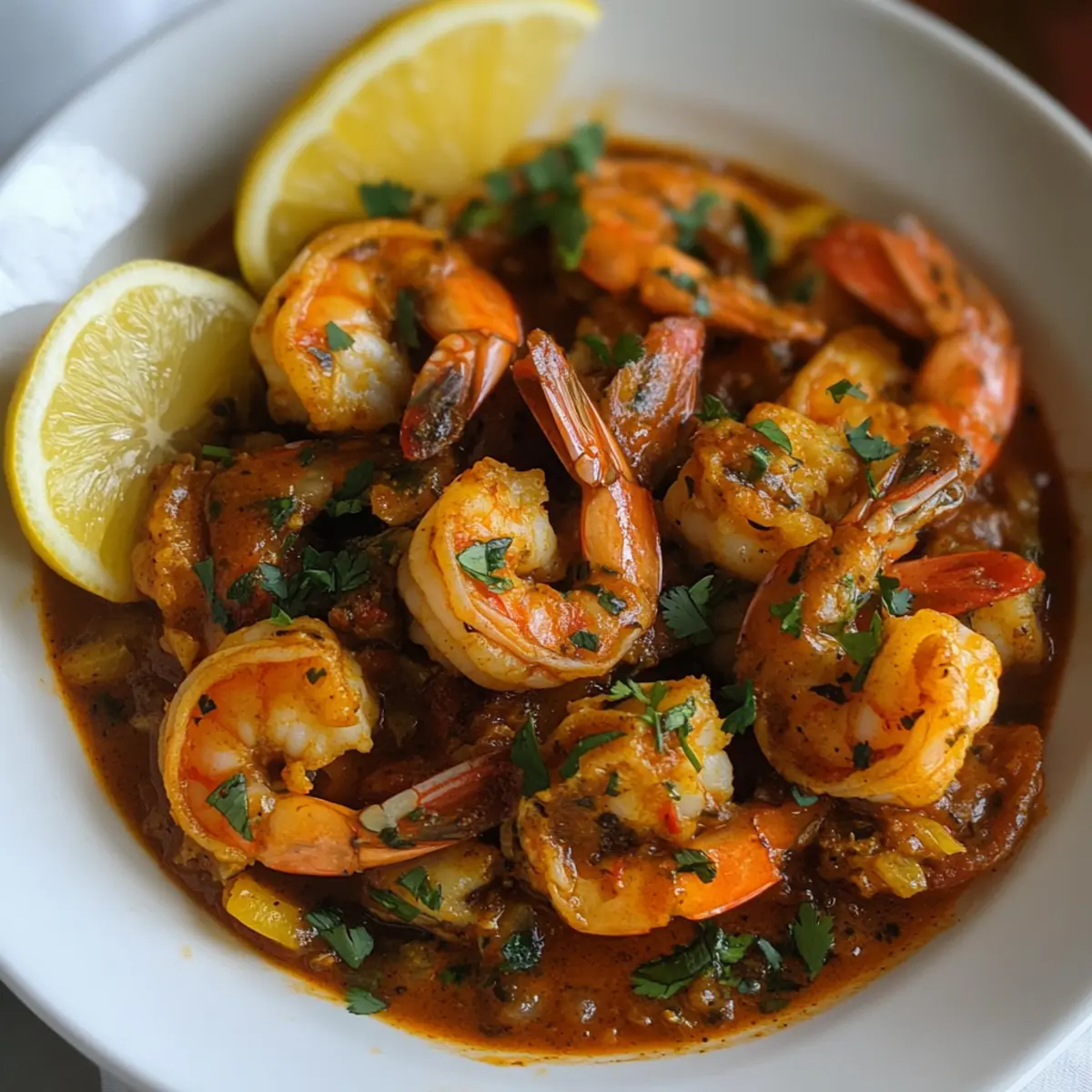 Squeeze den Saft von frischen Zitronenspalten in die Soße und füge den gehackten Koriander hinzu. Lass die Aromen für ein paar Minuten zusammenkommen, während du die Garnelen Mozambique leicht umrührst. Die Kombination aus Zitrone und Koriander sorgt für eine erfrischende Note.