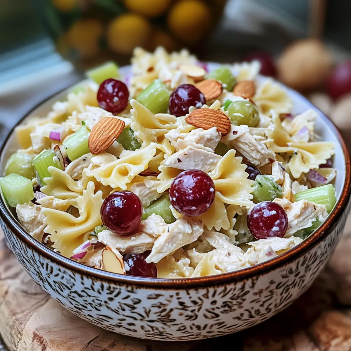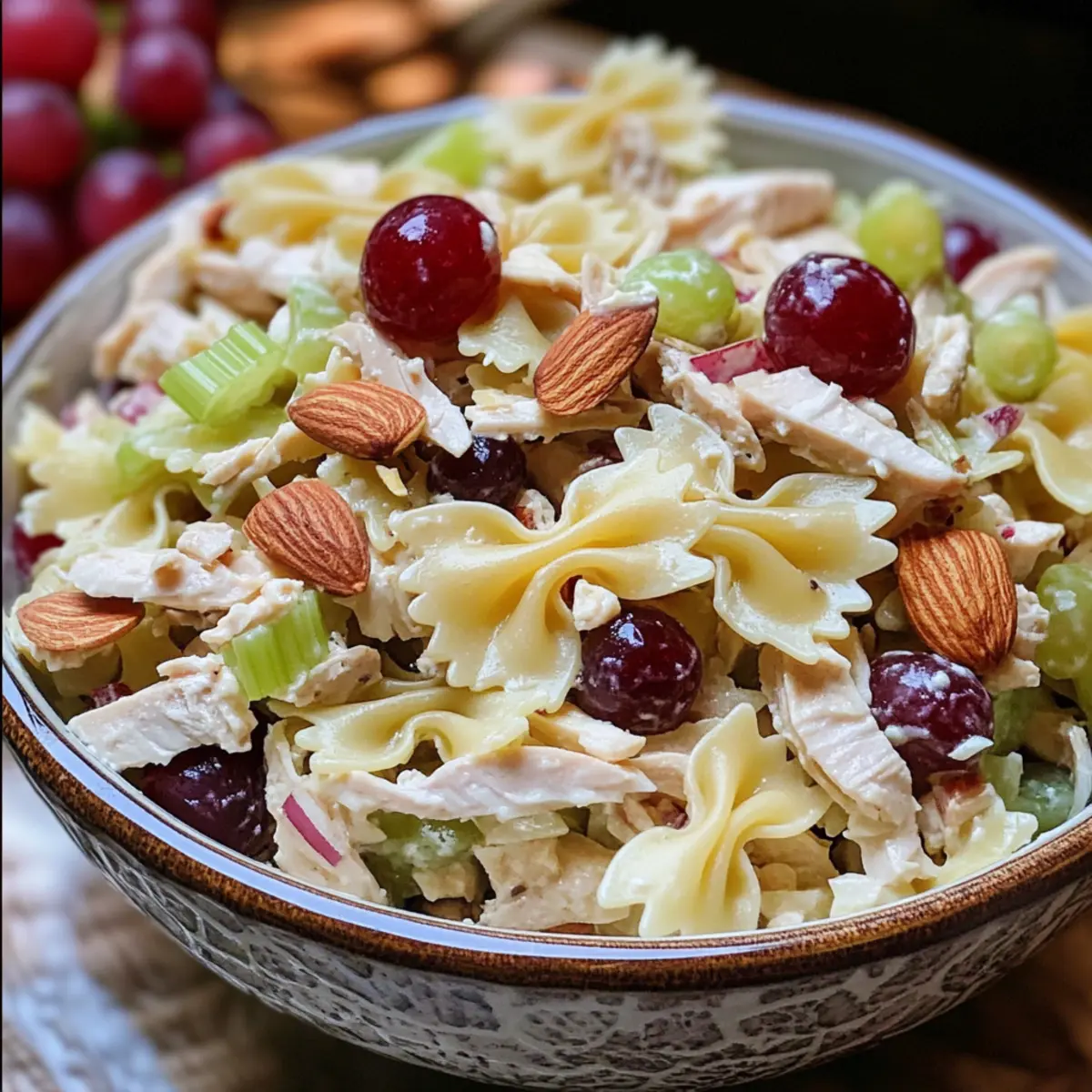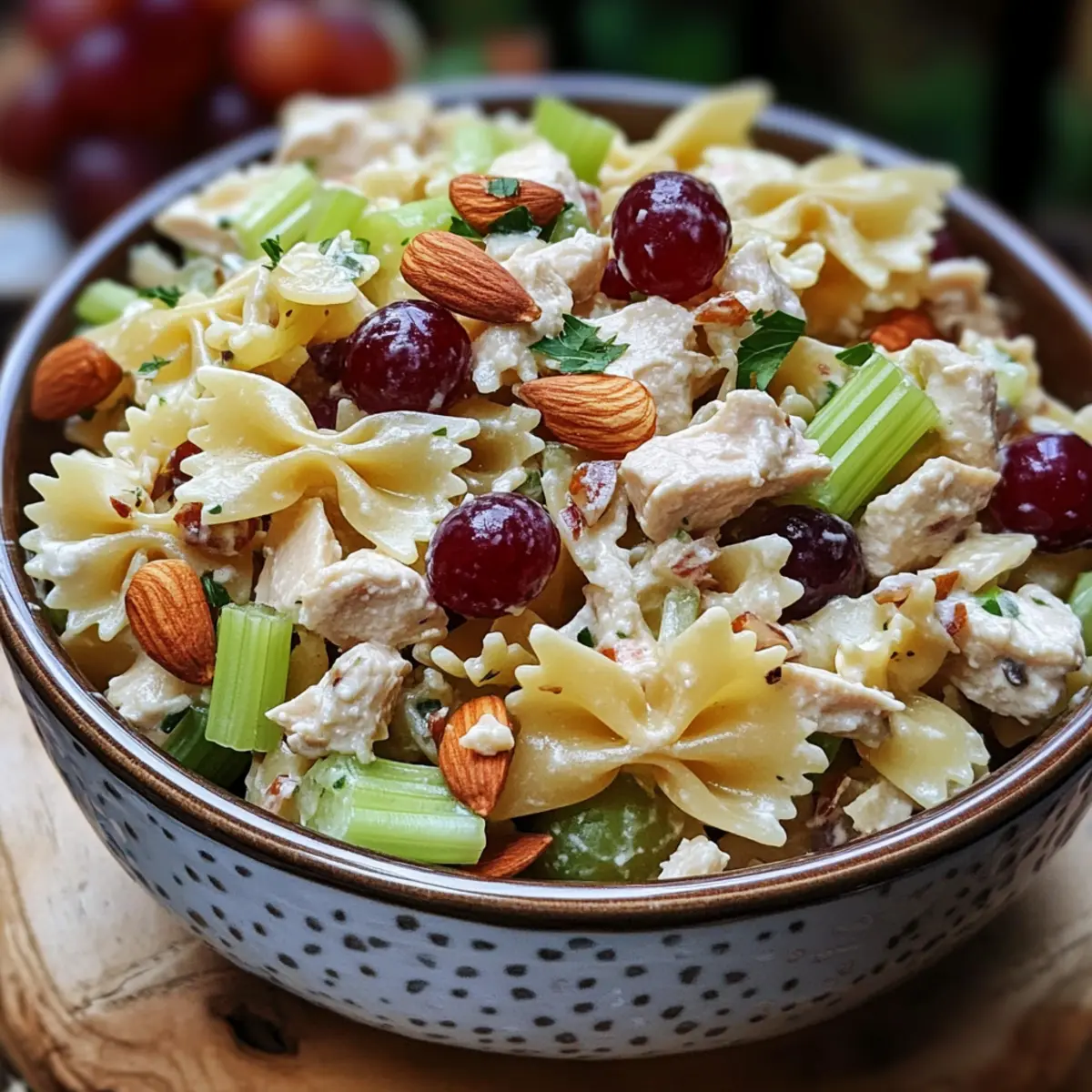 Es gibt kaum etwas Schöneres, als an einem sonnigen Tag mit frischen, gesunden Zutaten zu experimentieren. Heute lade ich euch ein, meine Waldorf Hähnchen Pasta Salat zu entdecken – ein Gericht, das nicht nur voller Geschmack steckt, sondern auch zur perfekten Wahl für eure nächsten Grillfeste oder Potlucks wird. Diese Kombination aus zartem Hähnchen, knackigen Mandeln und süßen roten Trauben bringt alle zur Freude und schafft eine Atmosphäre, die ganz im Zeichen der südlichen Gastfreundschaft steht. Und das Beste daran? Ihr könnt dieses leckere Rezept ganz einfach zubereiten, egal ob für ein geselliges Mittagessen oder als erfrischenden Abendbrot. Also, wer könnte bei einem so appetitlichen Gericht widerstehen? Lasst uns in die Zubereitung eintauchen!