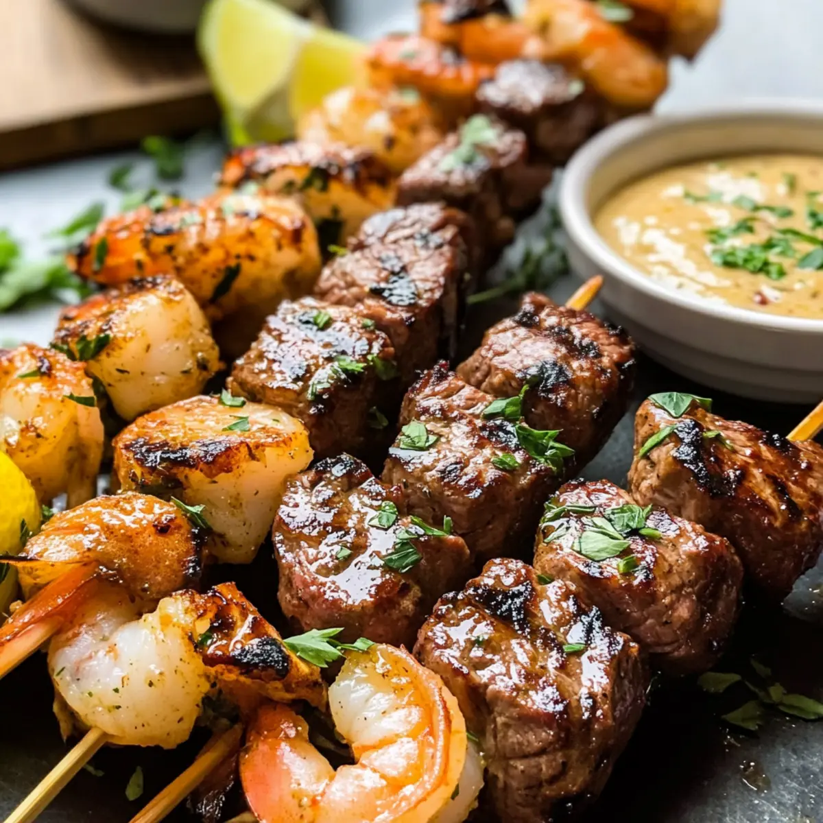 Diese würzige Steak- und Garnelen-Kabobs bieten Ihnen eine aufregende Geschmackskombination, die sicherlich jeden am Grill begeistern wird!