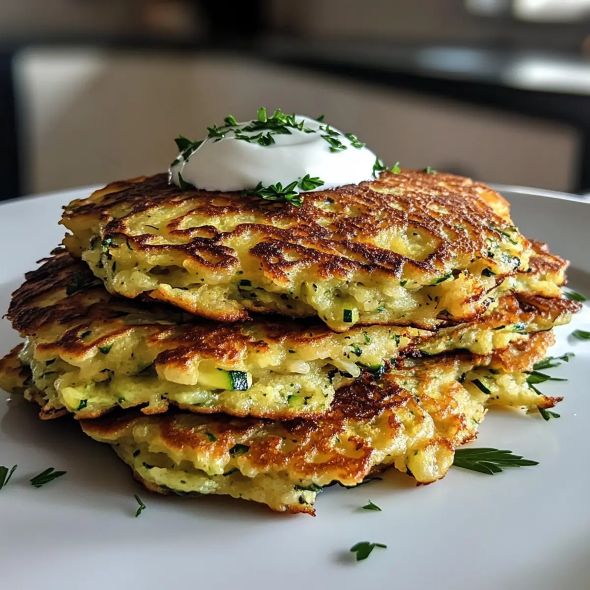 - Sauerrahm oder griechischer Joghurt – für eine cremige Note; ein köstlicher Begleiter zu den Zucchini-Pfannkuchen.